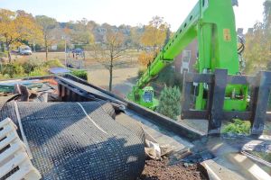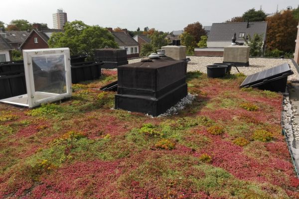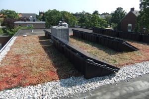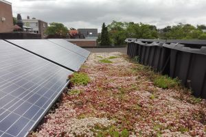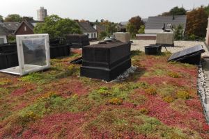 Tijdens de renovatie heeft de sedum-mat ruim een maand (van 9 oktober tot 11 november 2015) op het dak van de buren gelegen. Dat heeft het goed overleefd.