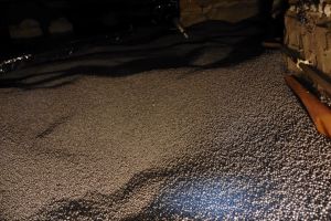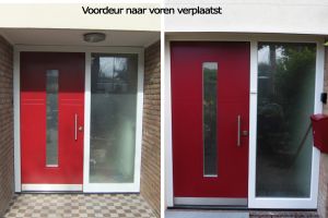 Bij het verplaatsen van de voordeur naar voren zagen we dat de spouw nog prima gevuld was (foto)