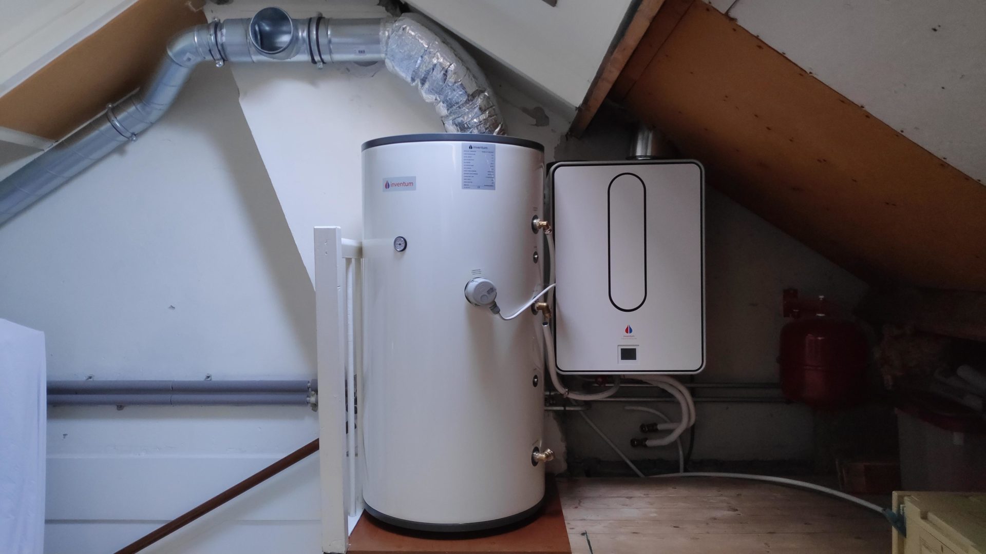 De verwarming en tapwater wordt door de ventilatiewarmtepomp verzorgt