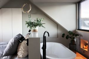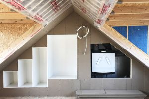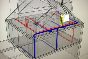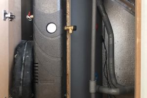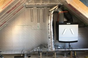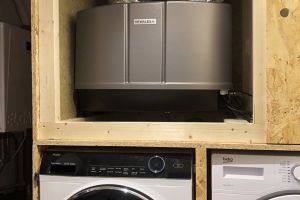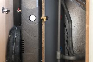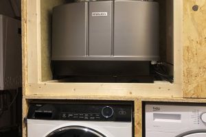 Voor verwarming hebben we een warmtepomp en voor warm water een aparte warmtepomp, een zonnecollector en buffervat van 270 liter. We gebruiken geen gas meer. Op de benedenverdieping en badkamer vloerverwarming, boven LTV convectoren met ventilatoren. We hebben een douchepijp WTW voor het terugwinnen van de warmte uit het douchewater. 20 zonnepanelen (7200Wp) leveren zo’n 6100 kWh per jaar, we verbruiken ongeveer 5300 kWh