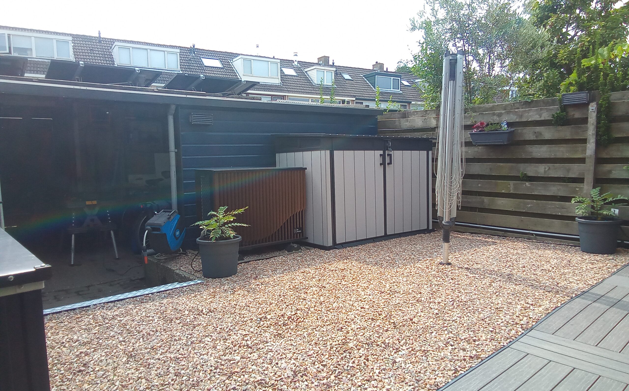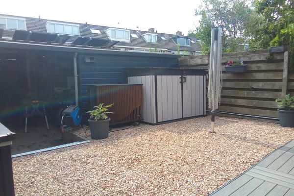 Tussenwoning uit 1963 met hybride warmtepomp, vloerverwarming en 15 zonnepanelen. Overigens is de warmtepomp full electric geïnstalleerd, en is de gasaansluiting verwijderd.