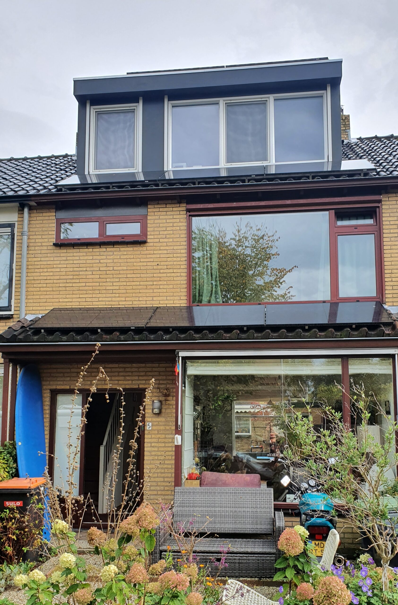 Jaren ’70 tussenwoning met erker en aan beide zijden een dakkapel. Zonnepanelen op elk stukje dak. Zuid-Oost en Zuid-West ligging. CV er uit. Gas afgedopt. 2 infrarood panelen in woonkamer. Inductie fornuis. Gang en overloop zijn niet verwarmd. De 4 slaapkamertjes en keuken zijn indien gewenst snel warm met convectorkachels met laag wattage.