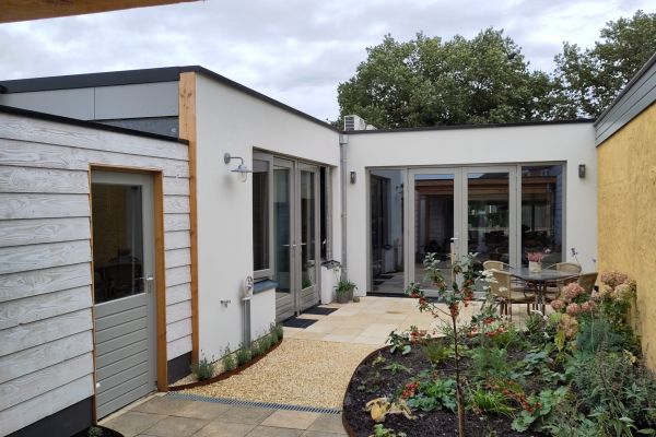 Na onze pensionering in 2019 vonden wij het hoog tijd om als vitale senioren met een ‘empty nest’ onze ruime 2-onder-1-kapper in Hattem met 209 m2 woonoppervlak vrij te maken voor een groter huishouden en te verruilen voor een kleinere en levensloopbestendige woning. Nadat we tevergeefs geprobeerd hebben om een nieuwbouwproject in collectief particulier opdrachtgeverschap met gemeenschappelijke voorzieningen, een soort knarrenhof, van de grond te krijgen (helaas geen kavels beschikbaar, duurt te lang), besloten we in de zomer van 2021 uit te kijken naar bestaande woningen en schreven ons in bij makelaars in Elburg. We liepen al vrij snel aan tegen deze mooie patiobungalow in Elburg en deze voldeed met wat kleinere aanpassings- en uitbouwmogelijkheden prima aan onze wensen. Ook de locatie is perfect: in levendige woonwijk, dichtbij voorzieningen en dichtbij één van onze kinderen i.v.m. eventueel toekomstige mantelzorg. Echter, nadeel was dat deze woning gebouwd is in 1970 – de oudste van de 3 eigen woningen die we ervoor hadden – slecht geïsoleerd was en energielabel E had. Dat was voor ons wel een uitdaging om de woning duurzamer te maken. Want dat stond voor ons vast, we willen ons steentje bijdragen aan verduurzaming en energietransitie door gasloos te gaan wonen. We deden mee aan de bieding voor deze woning en eind 2021 tekenden we de koopovereenkomst. Na een paar maanden van grondige voorbereiding van het verbouwings- en verduurzamingsplan, waarbij we ook een duurzaamheidsadviseur inschakelden en de vergunningprocedure bij de gemeente Elburg, begonnen we in mei 2022 met de werkzaamheden die grotendeels uitgevoerd zijn door een lokale aannemer en installateur, aangevuld met meerdere leveranciers, waarbij ik zelf de bouwcoördinatie deed. Nadat we er in augustus 2022 introkken moest er nog veel gebeuren en uiteindelijk kon na een jaar levertijd de warmtepomp in mei 2023 geïnstalleerd worden, waarmee de klus – op de tuininrichting na – geheel was afgerond. Als kroon op de renovatie en verduurzaming van de woning werd in augustus 2023 het hoogste energielabel A++++ aan de woning toegekend: gasloos, nul-op-de-meter en we leveren zelfs meer energie terug dan dat we afnemen!. We zijn er supertrots op en wonen er met veel plezier. Alhoewel de grote maatregelen nu genomen zijn en het hoogste energielabel bereikt is, blijven we kijken naar mogelijkheden voor verdere verduurzaming.