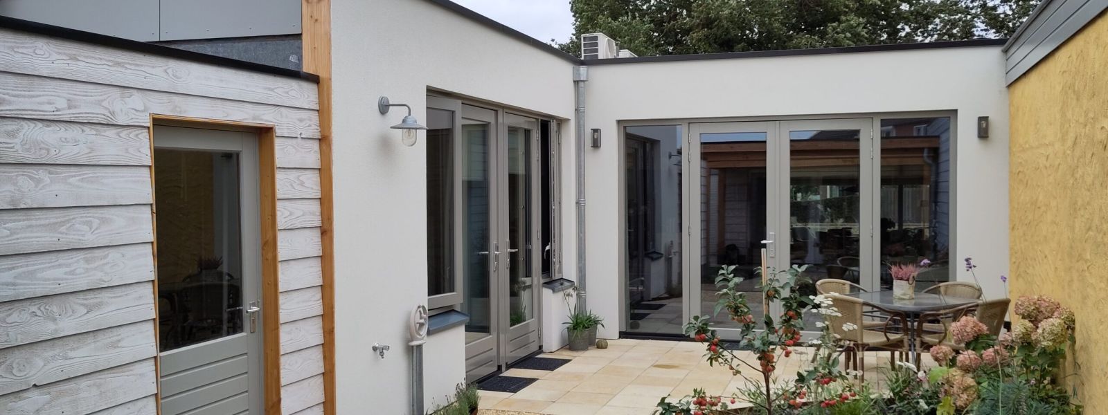 Na onze pensionering in 2019 vonden wij het hoog tijd om als vitale senioren met een ‘empty nest’ onze ruime 2-onder-1-kapper in Hattem met 209 m2 woonoppervlak vrij te maken voor een groter huishouden en te verruilen voor een kleinere en levensloopbestendige woning. Nadat we tevergeefs geprobeerd hebben om een nieuwbouwproject in collectief particulier opdrachtgeverschap met gemeenschappelijke voorzieningen, een soort knarrenhof, van de grond te krijgen (helaas geen kavels beschikbaar, duurt te lang), besloten we in de zomer van 2021 uit te kijken naar bestaande woningen en schreven ons in bij makelaars in Elburg. We liepen al vrij snel aan tegen deze mooie patiobungalow in Elburg en deze voldeed met wat kleinere aanpassings- en uitbouwmogelijkheden prima aan onze wensen. Ook de locatie is perfect: in levendige woonwijk, dichtbij voorzieningen en dichtbij één van onze kinderen i.v.m. eventueel toekomstige mantelzorg. Echter, nadeel was dat deze woning gebouwd is in 1970 – de oudste van de 3 eigen woningen die we ervoor hadden – slecht geïsoleerd was en energielabel E had. Dat was voor ons wel een uitdaging om de woning duurzamer te maken. Want dat stond voor ons vast, we willen ons steentje bijdragen aan verduurzaming en energietransitie door gasloos te gaan wonen. We deden mee aan de bieding voor deze woning en eind 2021 tekenden we de koopovereenkomst. Na een paar maanden van grondige voorbereiding van het verbouwings- en verduurzamingsplan, waarbij we ook een duurzaamheidsadviseur inschakelden en de vergunningprocedure bij de gemeente Elburg, begonnen we in mei 2022 met de werkzaamheden die grotendeels uitgevoerd zijn door een lokale aannemer en installateur, aangevuld met meerdere leveranciers, waarbij ik zelf de bouwcoördinatie deed. Nadat we er in augustus 2022 introkken moest er nog veel gebeuren en uiteindelijk kon na een jaar levertijd de warmtepomp in mei 2023 geïnstalleerd worden, waarmee de klus – op de tuininrichting na – geheel was afgerond. Als kroon op de renovatie en verduurzaming van de woning werd in augustus 2023 het hoogste energielabel A++++ aan de woning toegekend: gasloos, nul-op-de-meter en we leveren zelfs meer energie terug dan dat we afnemen!. We zijn er supertrots op en wonen er met veel plezier. Alhoewel de grote maatregelen nu genomen zijn en het hoogste energielabel bereikt is, blijven we kijken naar mogelijkheden voor verdere verduurzaming.