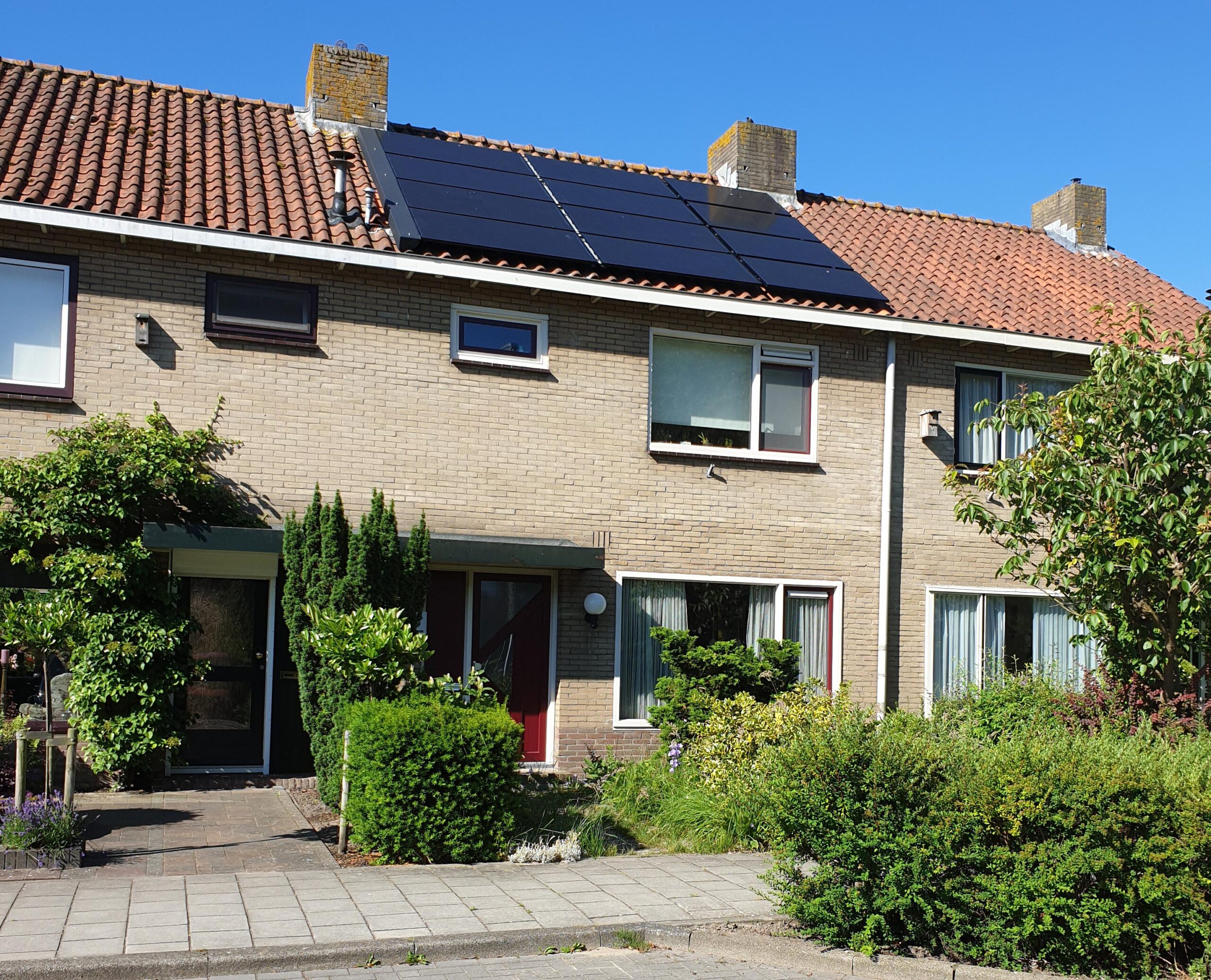 Wij hebben een tussenwoning uit 1970. Isolatie van de spouwmuur met piepschuimparels. Overal kunststof kozijnen met HR++ glas. Isolatie van de vloer (kruipruimte) met 20 cm pir platen. Isolatie van de zolder, met 10 cm pir platen. Na-isolatie aan de binnenkant van de badkamer met 4 cm pir platen. Zonnepanelen op voor- en achterdak en de schuur. Volledig elektrische water/water warmtepomp met ingebouwde boiler. Afgiftesysteem met bestaande radiatoren.
