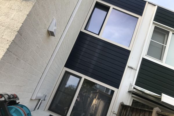 Voor & achtergevel volledig vervangen.(Hout was rot !)