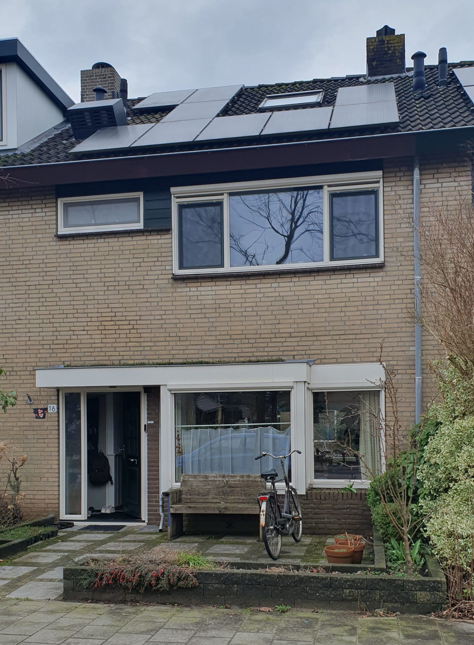 Tussenwoning uit 1973. Recent voorzien van vloer-, spouw- en dakisolatie. Hybride binnenwarmtepomp aangeschaft, maar is vooralsnog geen succes.