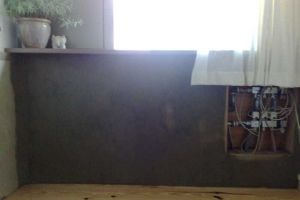 Basisleem en leemfinish toegepast met het idee een betere vocht/temperatuur regulatie in het huis te krijgen. Daarnaast erg fijn om mee te werken, ook als je zelf geen stukadoor bent.