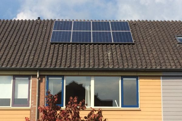 Ons rijtjeshuis uit 1976 heeft 8 zonnepanelen. Deze leveren ongeveer 2000 kwh per jaar aan electriciteit.