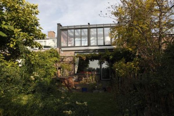 In het uiterste zuidoostelijke puntje van Haarlem hebben wij onze woning. We hebben een prachtig vrij uitzicht op de Meerwijkplas, het water aan de zuidkant van Schalkwijk. Het huis dateert uit de jaren zeventig. Het bouwplan is van 1975 en het is gebouwd in 1976-’78. Opvallend is dat toen al in het ontwerp rekening werd gehouden met mogelijkheden voor spouwmuurisolatie en dubbel glas in de kozijnen. De vorige bewoners – wij wonen er sinds 1998 – hadden al veel veranderd aan het pand. Zij lieten grotere ramen plaatsen (waarvoor de muren ‘ingezaagd’ moesten worden), en lieten het balkon op het zuiden overkappen met een constructie van stalen balken en dubbelglasramen, ook het dak. Zo ontstond een serre die – als de zon schijnt – flink opwarmt.
