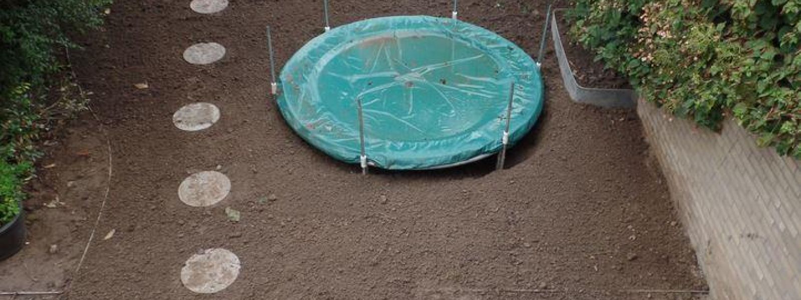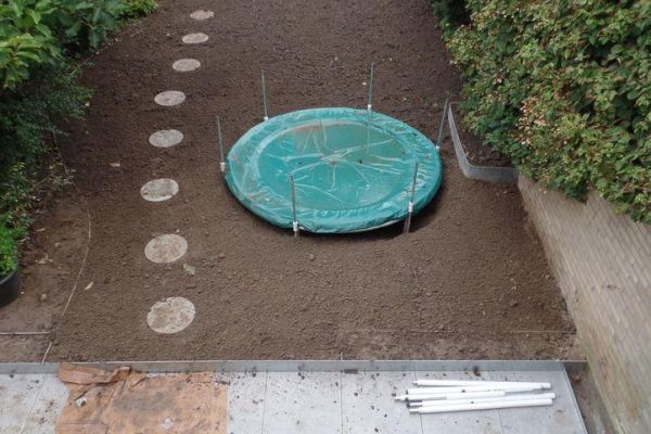 Het geheel is in 2017 keurig aangelegd en werkt prima. Hiervoor is wel veel graafwerk verricht in combinatie met de aanleg van een nieuw terras. Daar waar vroeger nog wel eens ons oude terras helemaal onder water kwam te staan bij grote hoosbuien (zie foto uit 2016) is dit in de nieuwe situatie nooit meer voorgekomen.