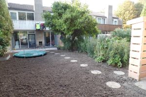 Ik heb mijn huis (grotendeels) afgekoppeld van regenwater. Het gaat om 50 m2 dak waardoor het regenwater niet meer in het riool terechtkomt maar in zogeheten infiltratiekratten onder de grond. Vandaar uit loopt het regenwater geleidelijk weg in de grond.Het geheel is in 2017 keurig aangelegd en werkt prima. Hiervoor is wel veel graafwerk verricht in combinatie met de aanleg van een nieuw terras. Daar waar vroeger nog wel eens ons oude terras helemaal onder water kwam te staan bij grote hoosbuien (zie foto uit 2016) is dit in de nieuwe situatie nooit meer voorgekomen.