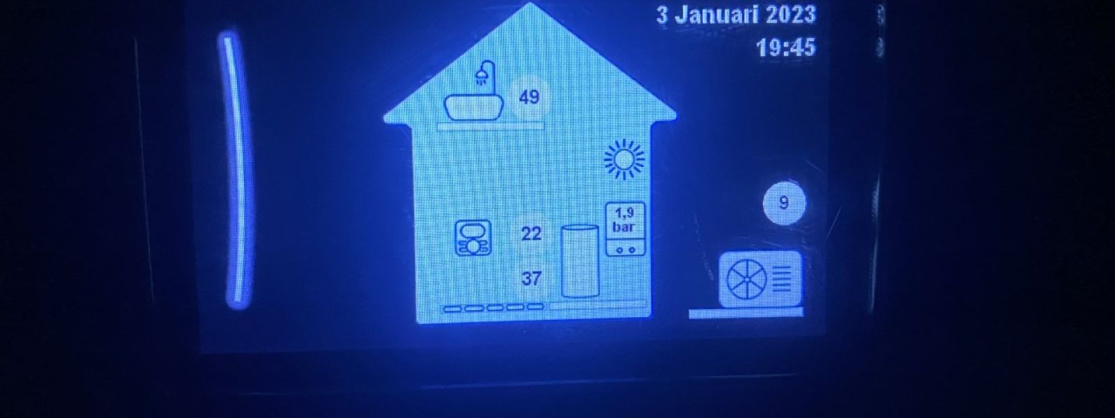 Gehuurde zonnepanelen, 8 stuks. Plus 4 stekkerpanelen zelf geplaatst. Van het gas af doordat ik een all-electric warmtepomp heb. Deze verwarmt beneden dmv vloerverwarming en de oude radiators, boven alleen radiators. Beneden ook vloerkoeling via warmtepomp en vloerverwarmingsleidingen.