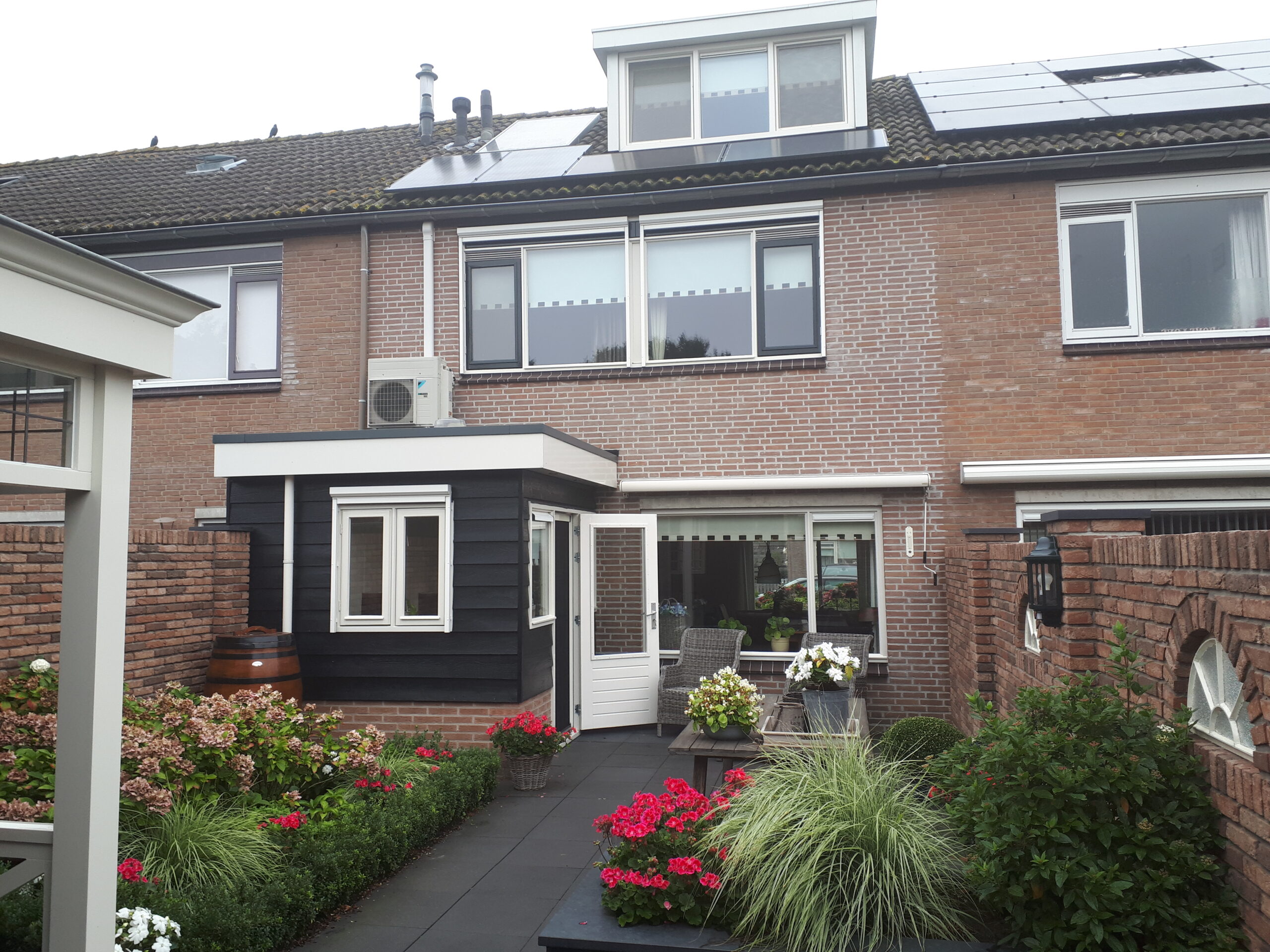In 2010 een zonneboiler geplaatst met een boiler van 120 liter, incl. hotfill voor de wasmachine. (Comfort en Energiebesparing) In 2014 hebben we 6 PV panelen 255 WP aangebracht op de woning, 2 op de dakkapel en 4 op het schuine dak. (Energiebesparing) In 2019 hebben we 4 extra PV (275WP) aangebracht op het dak van de berging (Energiebesparing) Medio 2019 hebben we de cv ketel vervangen voor een hybride warmtepomp Daikin met een cv ketel Intergas. (Energiebesparing)