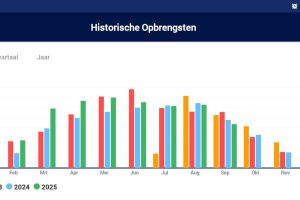 12 zonnepanelen van 400 Wp per stuk, georiënteerd op het zuidoosten (met een hellingshoek van 35 à 40 graden) leveren circa 5000 kWh per jaar op.