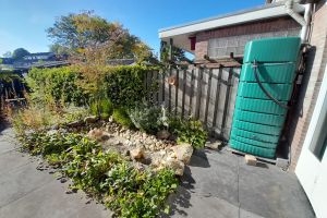 – Een grote regenton weegt veel als deze vol is en kan daarmee zorgen dat tegels verzakken als de regenton niet op een voldoende stevige ondergrond staat.