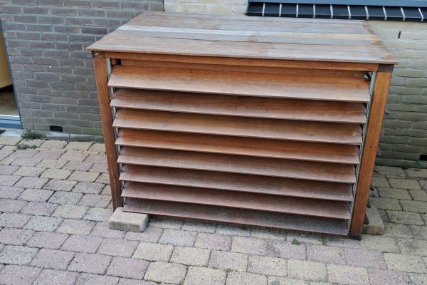 En voor de mooiheid een kastje eromheen getimmerd met beweegbare lamellen.