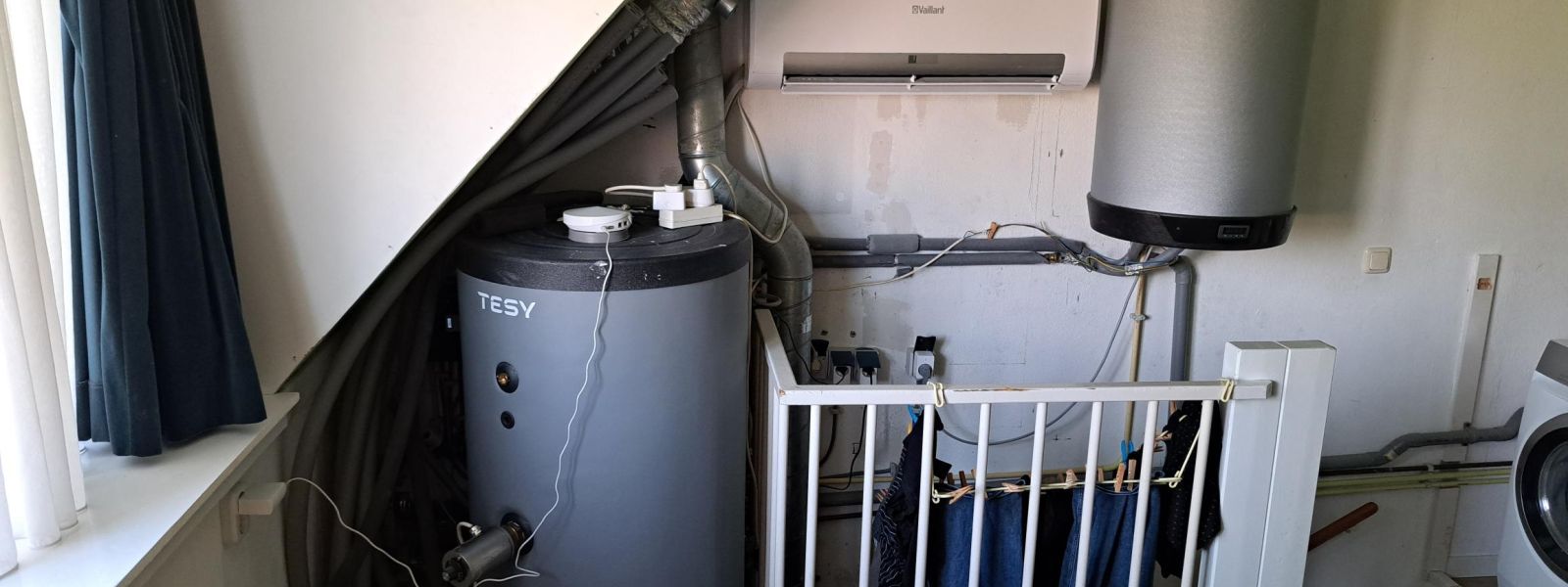 Loopt op laag vermogen (220 Watt- 290 Watt) om warm water te maken. Loopt overdag als de zon schijnt op de PV panelen.