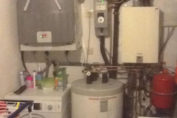 Nog steeds een gasketel die 300m3 gas per jaar verstookt. circa 150m3 voor warmwater in de winter en 150m3 voor badkamer en studeerkamers.