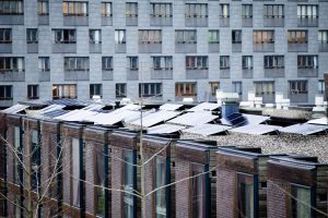 Een blok van 50 corporatiewoningen van Eigen Haard waarvan er 13 meedoen aan het HuurdeZon-project: het huren van een set zonnepanelen waarmee in het jaarverbruik van het huishouden kan worden voorzien. De panelen staan op de platte daken en zijn aangesloten op de individuele meters. Er wordt dus gesaldeerd. Bij meerdere huishoudens is een ruime overproductie. De huur van de panelen wordt geïncasseerd door de corporatie maar valt niet onder de huur van de woning.