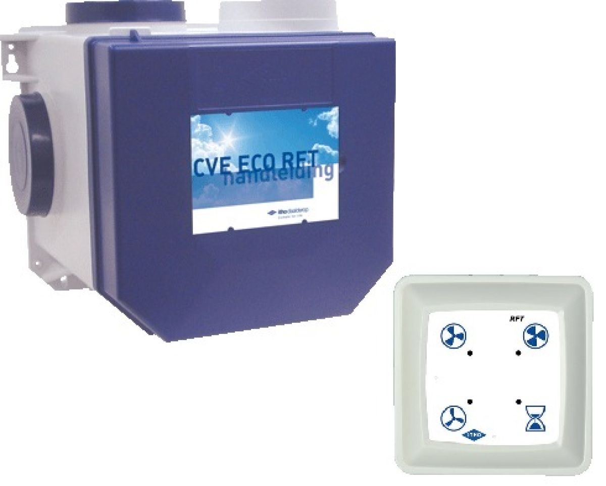De mechanische ventilatie vervangen door de Itho CVE ECO RFT met twee draadloze afstandsbedieningen in de keuken en badkamer. De afzuigkap in de keuken is afgekoppeld van de mechanische ventilatie en rechtstreeks naar buiten gebracht. Zie: http://www.ithodaalderop.nl/producten/ventilatie-hele-huis/mechanische-ventilatie/cve-eco-rft