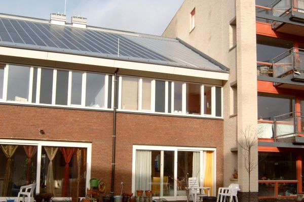 12 eengezinswoningen en 7 appartementen met gemeenschappelijke voorzieningen.Dak- en vloerisolatie: PS schuim