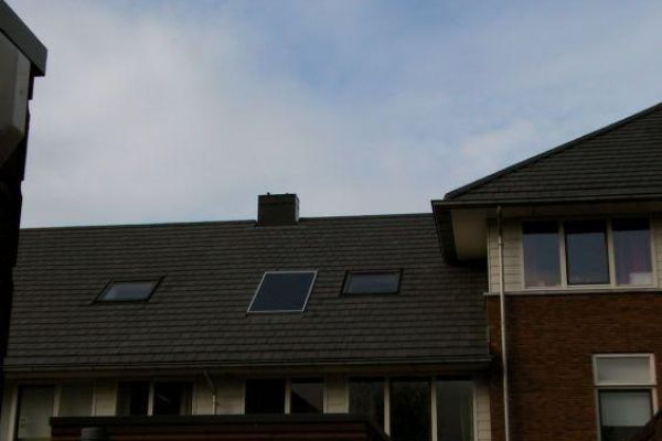 De buitenzonwering op het zolderdakraam (orientatie Z) zorgt in de zomer voor een behoorlijke reductie van de zonnewarmte.