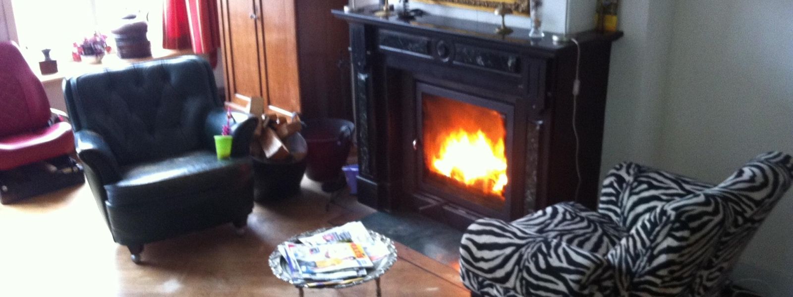 Zelfontworpen woning met verwarming door middel van hoog rendement houtkachel, pelletkachel en zonnecollectoren