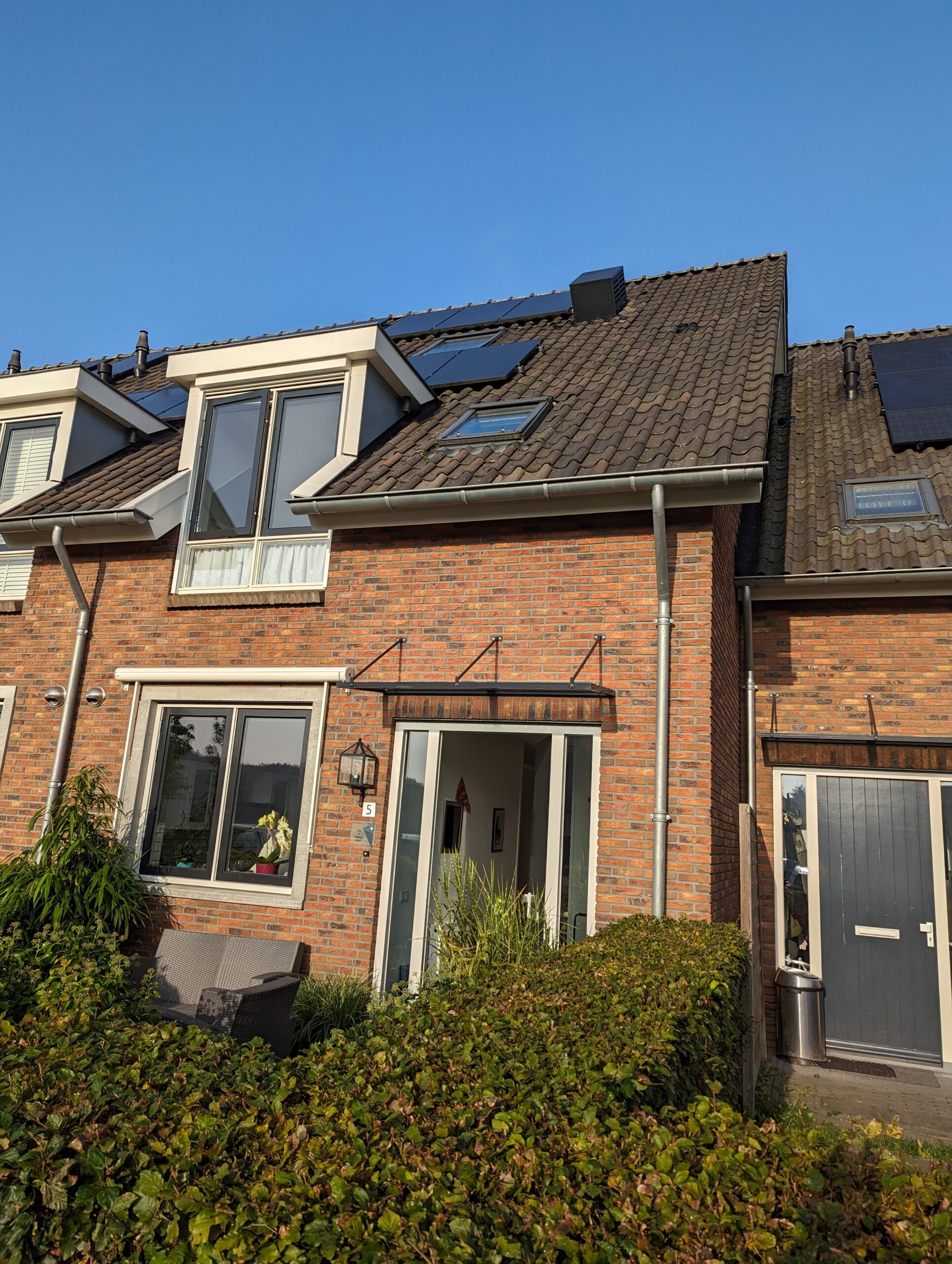 Woning van 2013 is aardgasvrij gemaakt d.m.v. een All electric warmtepomp met een boiler van 200 liter warm water te installeren, inductie kookplaat te plaatsen en 10 zonnepanelen op de oostkant en 8 zonnepanelen op de westkant en de elektra in de meterkast aangepast. Tevens laagtemperatuur wandconvectoren geplaatst in de woonkamer, keuken en gang. Sinds kort  een plug-in batterij geplaatst van 2,7 kwh om zo veel als mogelijk is de 0 op de meter te houden. Om het in huis koel te houden in de zomer hebben wij screens boven laten plaatsen en beneden zonneschermen. In 2024 is de gasaansluiting verwijderd.
