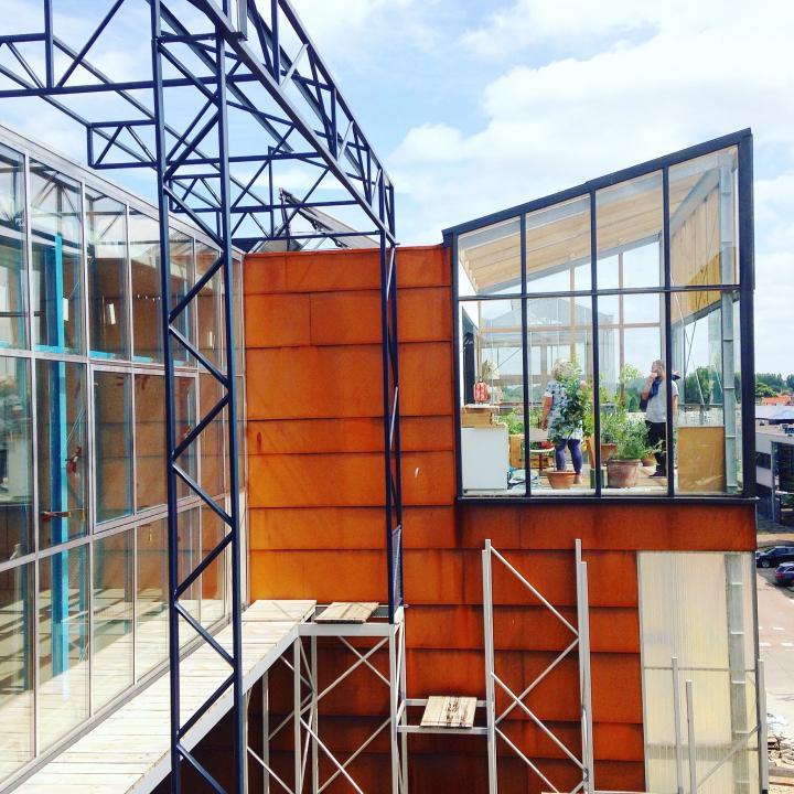 Woon-werkhuis in de Buiksloterham, Amsterdam-Noord. Opgeleverd in 2016. Wij hebben op dit voormalig bedrijjventerrein een woon-werkhuis gebouwd dat heerlijk ruim en open is. Bij het ontwerp van het huis zijn alle state-of-the-art duurzame technieken grondig onderzocht. We hebben uiteindelijk gekozen voor een hybride ‘vier-seizoenen-concept’ waarbij we verschillende technieken combineren en bovendien ruimte laten voor toekomstige aanpassingen. We verwarmen het huis met 48 heat pipes, een 6kW PVT-warmtepompsysteem en een 18kW CV-houtkachel. Kern van het systeem is een 1000 liter hygiëneboiler die als ‘wateraccu’ fungeert. Bovendien hebben we 12 zonnepanelen. Het huis is voorzien van een kas waarmee de ventilatielucht wordt voorverwarmd. Voor de kenners: het huis heeft een EPC van -0,04.