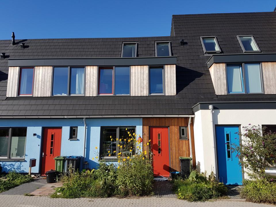 Moderne tussenwoning uit 2016 in de ecowijk Mandora in Houten. Uitstekende isolatie, 14 zonnepanelen, een grondwarmtepomp voor al het warmwater, een WTW balansventilatie en een douche WTW zorgen ervoor dat een gezin van vijf personen nagenoeg 0 op de meter is. Daarnaast hergebruiken we regenwater om de WC’s door te spoelen en de was mee te doen. Het overige regenwater wordt in de vijver en tuin opgevangen.