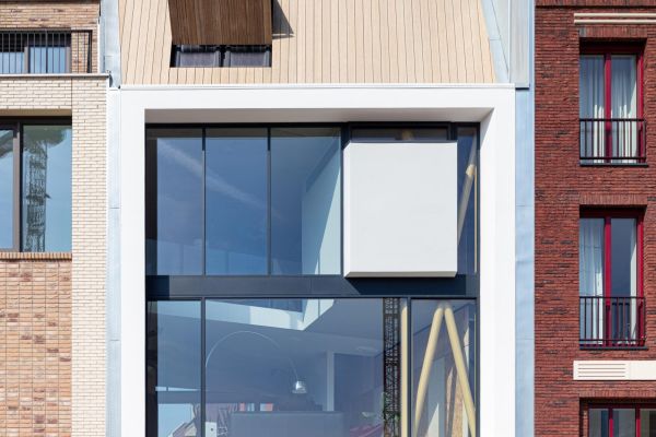 In 2015 ontstond de mogelijkheid om zelf een huis te (laten) ontwerpen en bouwen op een kavel naast het station van Delft. De woning is ontstaan uit een dialoog tussen de eigenaren/bewoners en de architect. De woning is gasloos, uitstekend geïsoleerd, maakt gebruik van (bodem)warmtepomp, balansventilatie met WTW (warmteterugwinning) en het regenwater wordt niet geloosd maar in de tuin en de gracht opgevangen. De zonnepanelen zijn verwerkt in de achtergevel van het huis zodat ze geen onnodige ruimte innemen. De woning bevat kenmerken van een passiefhuis (overstekken) maar ook veel glas, wat weer andere uitdagingen tot gevolg heeft. De materialen die zijn gebruikt zijn zo veel mogelijk circulair. Het huis is toekomstbestendig ontworpen zodat toekomstige eigenaren zonder veel moeite extra kamers kunnen realiseren.