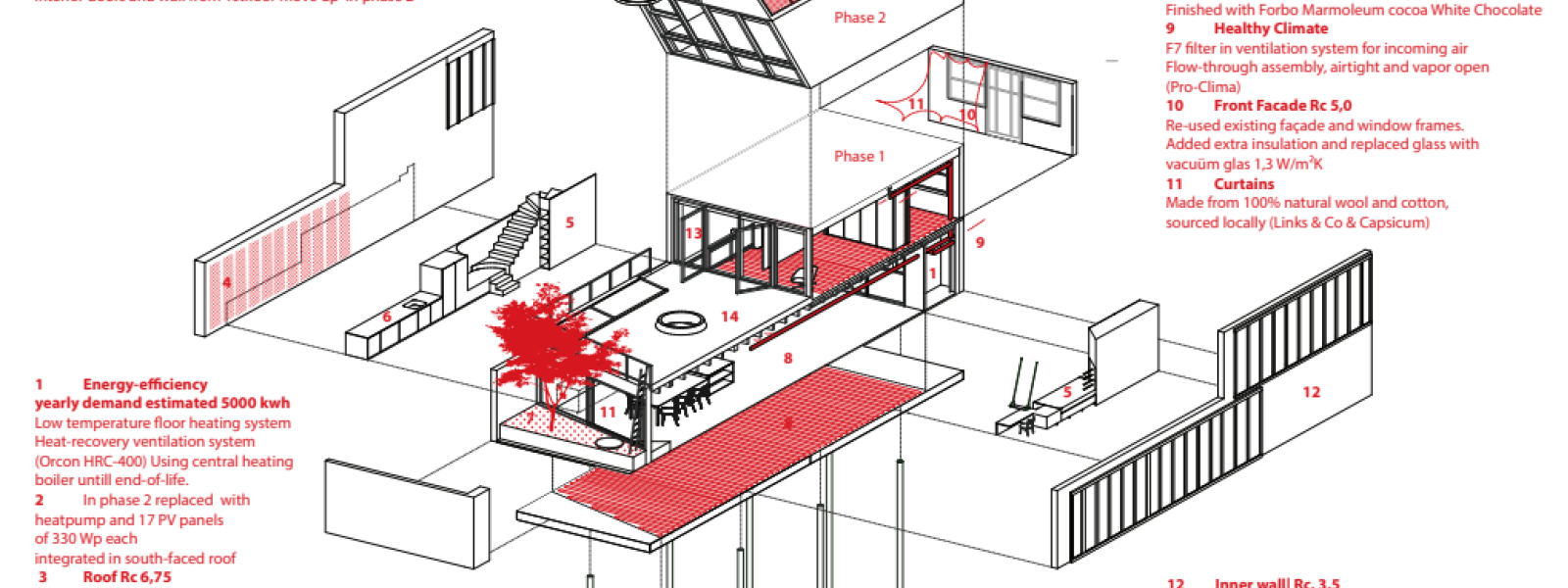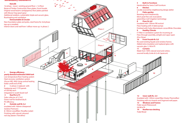 Ons project is een transformatie van garage naar duurzame, biobased tussenwoning. Momenteel zijn we klaar met fase 1, de retrofit van de bestaande schil. Over een aantal jaren volgt fase 2, een top-up van 2 verdiepingen inclusief zonnepanelen en warmtepomp. De belangrijkste werkzaamheden voor fase 1 waren:Funderingsherstel incl. aanbrengen stabiliteitsportaal voor fase 2Aanbrengen van dragende HSB muren inclusief biobased isolatie (combinatie van schapenwol en houtvezelisolatie)Toevoegen patio-tuin op de begane grond en nieuwe puien van frake hout. Hergebruik van bestaande balklaag en toevoeging van daklichten. Wtw systeemLeemstuc op noordelijke oriëntatie en vlasbehang van organoid op zuidelijke oriëntatie. Op maat gemaakte meubels en trap van berken multiplex. Lokaal gekochte keuken van Baboon