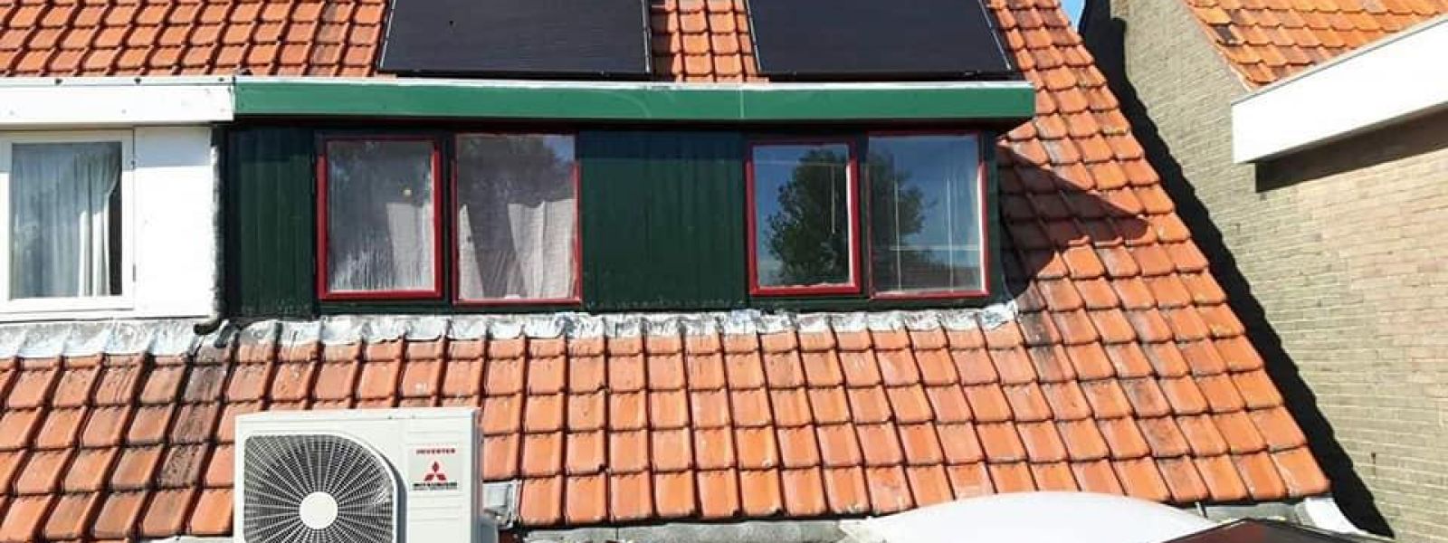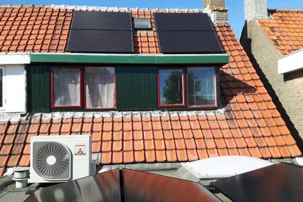 We hebben 12 zonnepanelen, goed voor maximum 3600kWh per jaar. Doordat alles elektrisch werkt, is dit niet voldoende, maar dekt het het verbruik van de apparaten die vroeger op aardgas werkten. We hadden een gaskachel, deze staat er alleen nog voor de sier. Verwarming gebeurt met een lucht/lucht warmtepomp (een airco die 2 kanten op kan werken) en mechanische ventilatie die de warme lucht via roosters naar de koudere vertrekken zuigt. Dit werkt in de praktijk prima en is erg zuinig. Het meeste stroom kost de conventionele boiler voor warm water..