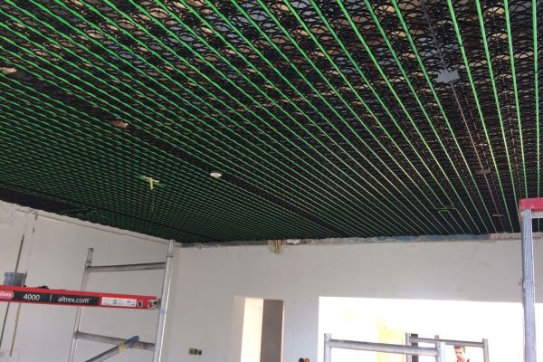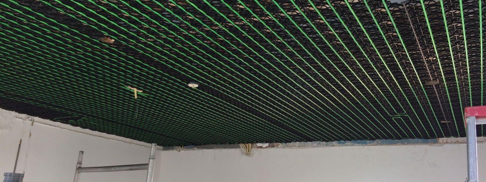 In de woonkamer is plafondverwarming, in de badkamer vloerverwarming, en in de overige vertrekken staan LT-convectoren
