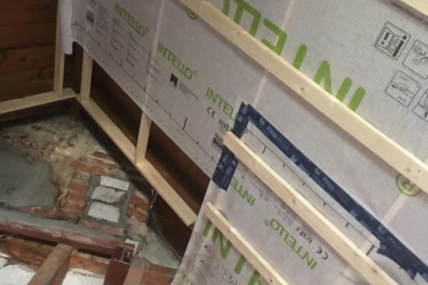 De uitbouw is uitgevoerd in HSB en ook geisoleerd met cellulose.