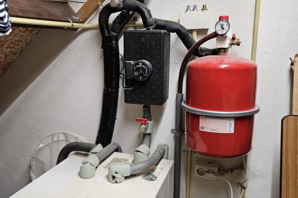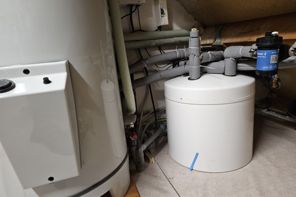 Warmtepomp, 5.5 kW met zonneboiler en boilervat voor sanitairwater. Elektrisch keukenboilertje.