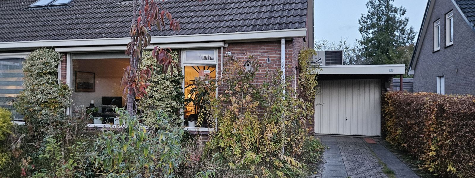 Beplanting rondom het huis en aan de gevel.
