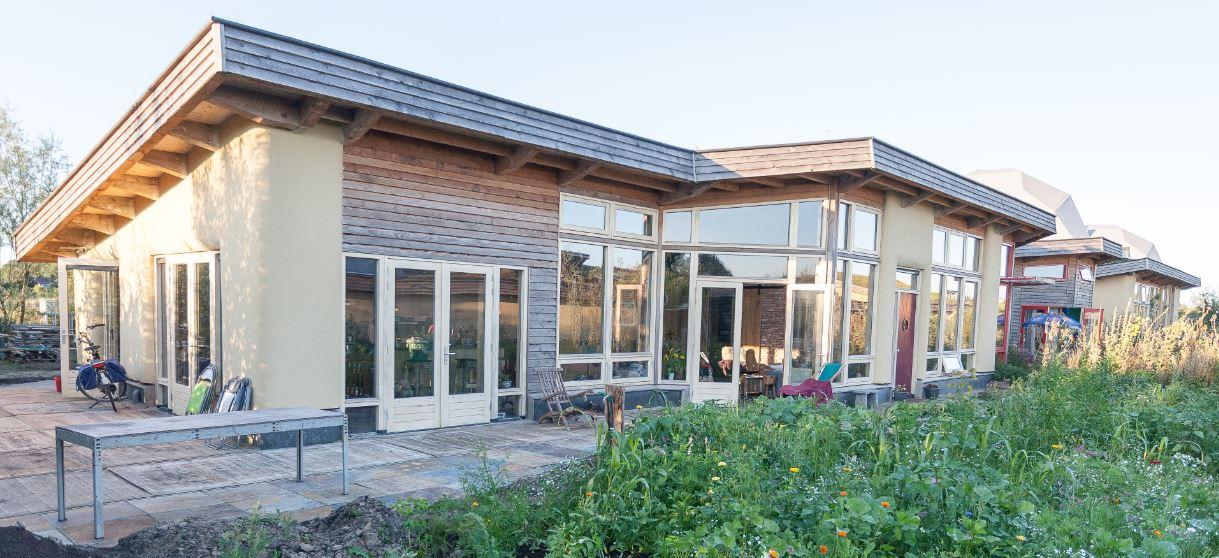 Extreem lage voetafdruk bouw door alleen gebruik van gerecyclede (bijv. autobanden), lokaal gewonnen (bijv. klein) en duurzame materialen (zoals hennep en stro) te maken