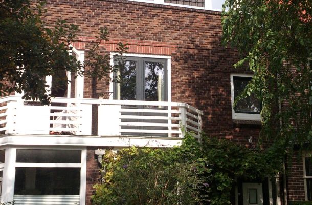 Woning, gemeentelijk monument met steensmuren. In de loop der jaren zijn de kozijnen aan de achterzijde vervangen en uitgerust met HR+(+) glas, het platte dak is geïsoleerd, de niet onderkelderde vloeren zijn (deels) geïsoleerd. Aan de voorzijde bevinden zich onverwarmde serres met enkel glas als buffer. Een zonneboiler verzorgt de voorverwarming van het warmtapwater (ook voor de afwasmachine). Er is een zon-PV systeem aanwezig van 4 kWp waarmee het gehele elektriciteitsverbruik opgewekt wordt. Verantwoord isoleren van de monumentale gevels aan de binnenzijde is complex en bouwfysisch lastig te onderbouwen. Daarom wordt, als nog te zetten stap, ingezet op verduurzaming van de warmtevraag met een pellet/CV-kachel op basis van pellets met een verantwoorde duurzame herkomst.