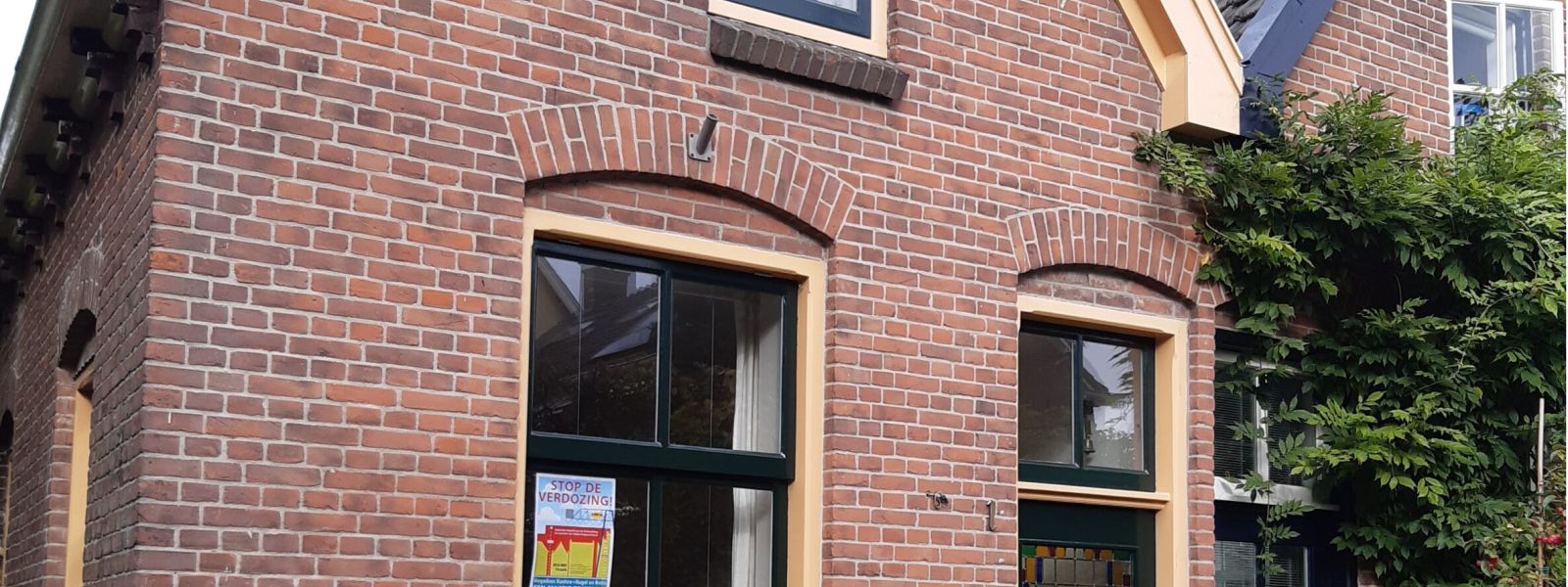 Geheel gerenoveerde begane grond woning, 2 onder een kap uit 1903. Houtskelet aanbouw met groen dak.