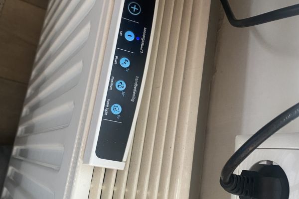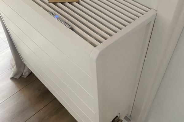 Ketel met vloerverwarming, lage temperatuur radiatoren, houtkachel, 6 zonnepanelen op platte dak garage
