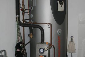 Kollektooroppervlak 7.5 m2, 400 L vat, dit geeft voeldoende tapwater voor 5 personen in de maanden april t/m september. Een tweede spiraal boven in het vat wordt in de winter door de warmtepomp gebruikt om het water op te warmen.