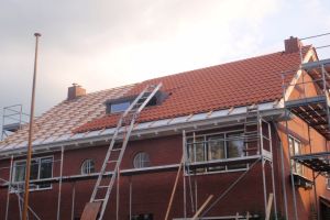In een 2-onder-1-kap huis is het moeilijk om het dak van buiten te isoleren. Maar gelukkig konden we toen onze buren overtuigen om mee te doen. De dakpannen waren na meer dan 80 jaar sowieso aan vervanging toe. We hebben van buiten 12 cm PUR isolatieplaten opgelegd, daarop dan de houten latten, en dan de dakpannen. Omdat de dakpannen dan hoger kwamen te liggen moest ook de dakgoot worden aangepast. Aan de binnenkant hebben we verder nog 8.5 cm ISOVER. In totaal, hebben we nu een dak met een uitstekende R waarde van > 8.