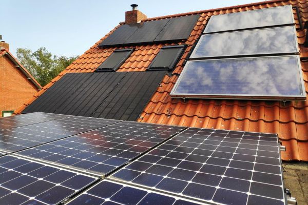 STROOM: Zonnepanelen met in totaal 5450 Wpeak: een groot systeem met 14 panelen, en een klein systeem voor het stopcontact met 2 panelen; WARMTE (CV): Lucht/water split warmtepomp 3 kW, houtkachel in de woonkamer; TAPWATER: Zonneboiler met 400 L, in de winter helpt de warmtepomp mee