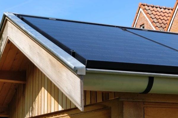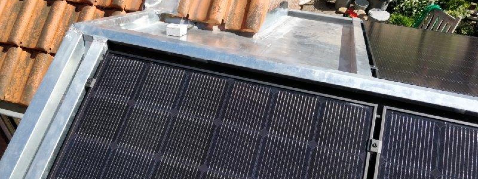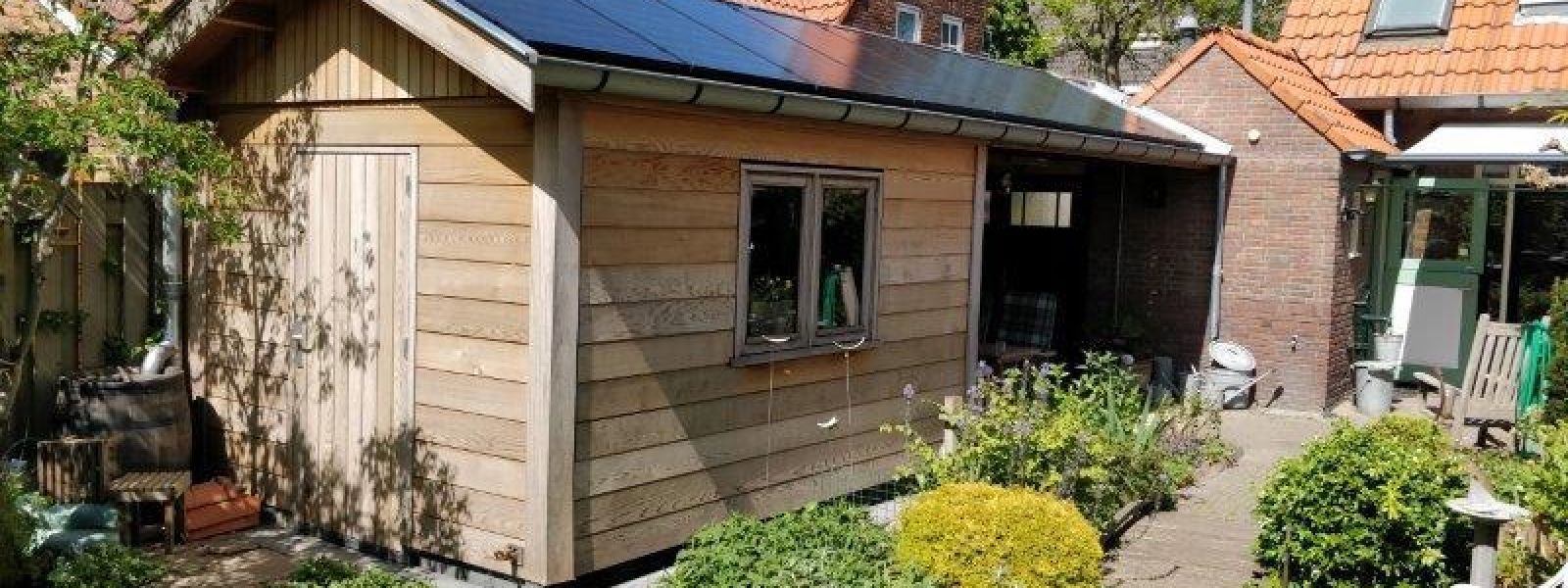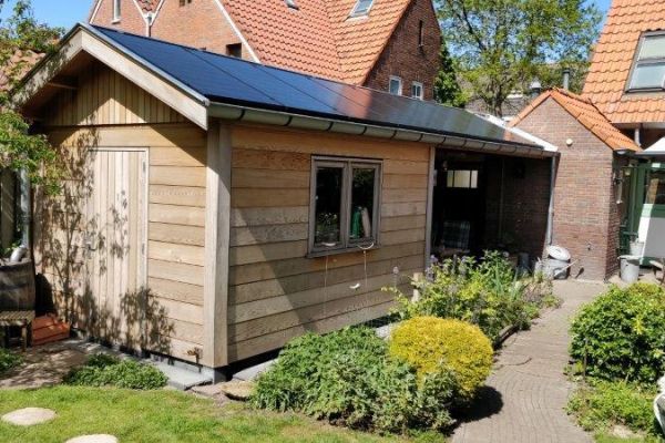 8 Zonnepanelen in landscape op het tuinhuis.