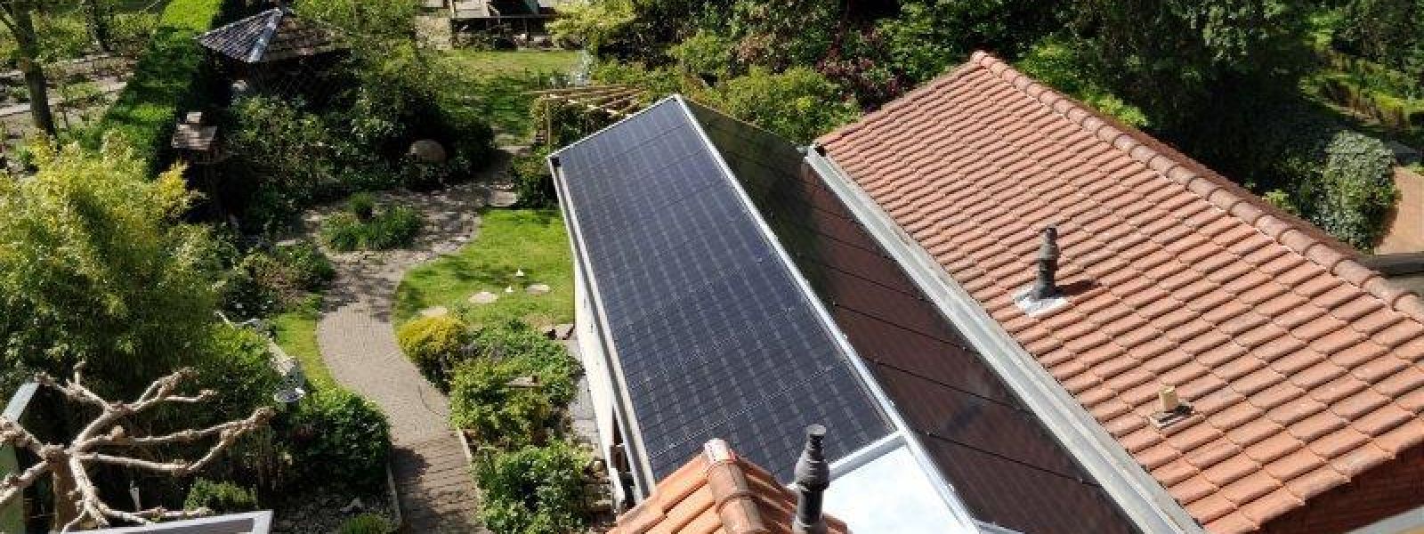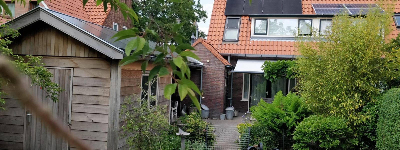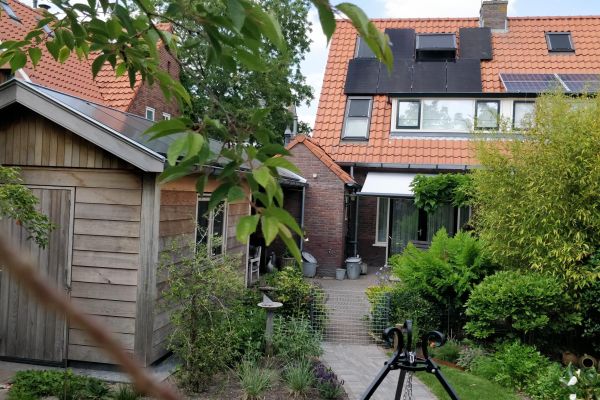 Op het dak van de woning 6 zonnepanelen. En hebben begin 2019 een schuur gebouwd voor 17 zonnepanelen op aan te brengen. April 2020 hebben wij dit dak van de schuur voorzien van de zwarte zonnepanelen geheel geintregeerd in het dak. Waarna we als laatste nog 8 panelen op het tuinhuis hebben gelegd in landscape. Totaal dus 31 panelen wat zonder het auto laden nul op de meter is.