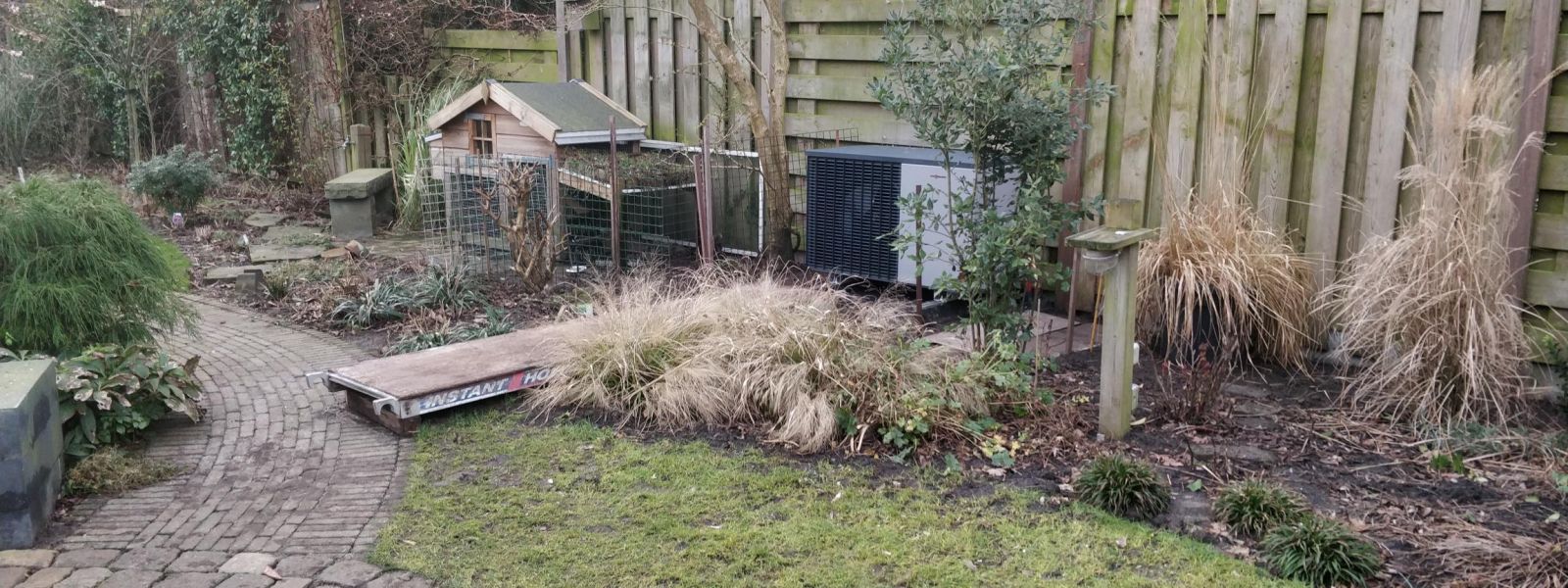 Tuinhuis heeft een aparte boiler met Monoblok voor de vloer verwarming.
