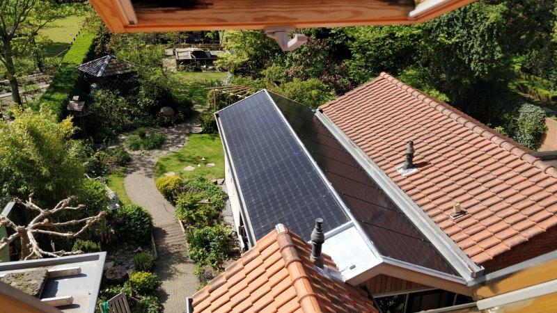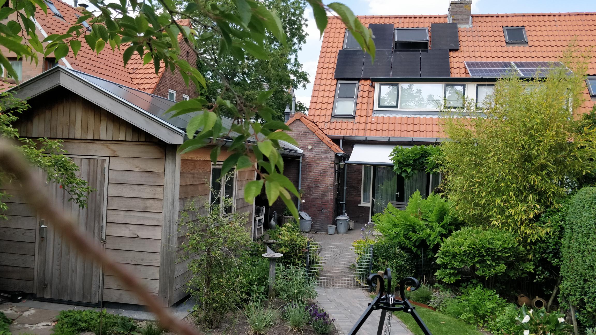 Op het dak van de woning 6 zonnepanelen. En hebben begin 2019 een schuur gebouwd voor 17 zonnepanelen op aan te brengen. April 2020 hebben wij dit dak van de schuur voorzien van de zwarte zonnepanelen geheel geintregeerd in het dak. Waarna we als laatste nog 8 panelen op het tuinhuis hebben gelegd in landscape. Totaal dus 31 panelen wat zonder het auto laden nul op de meter is.
