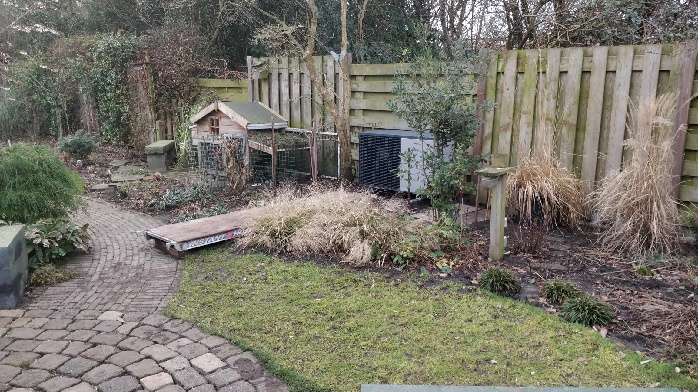 Tuinhuis heeft een aparte boiler met Monoblok voor de vloer verwarming.
